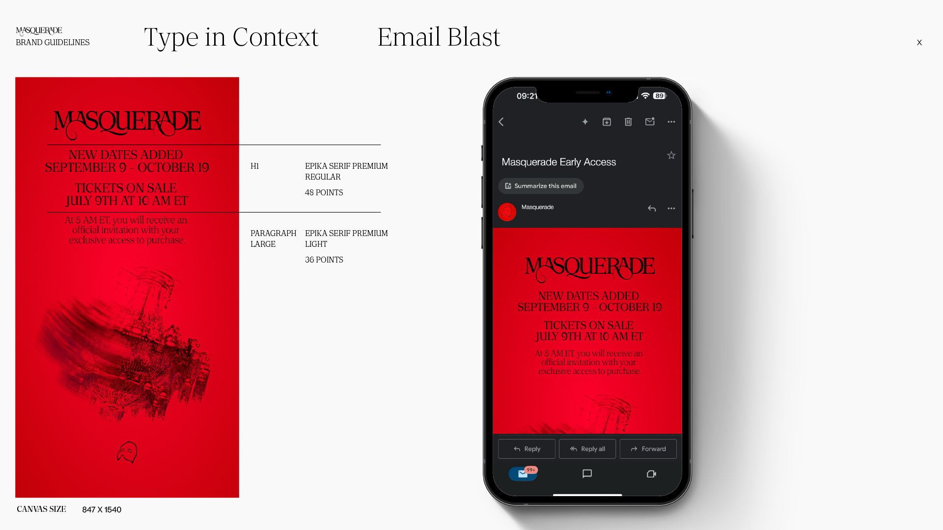 Through typography, color systems, and atmospheric visuals, the brand bridges classic gothic elegance with a modern, cinematic edge, inviting audiences into a fresh yet familiar universe of spectacle, romance, and intrigue.